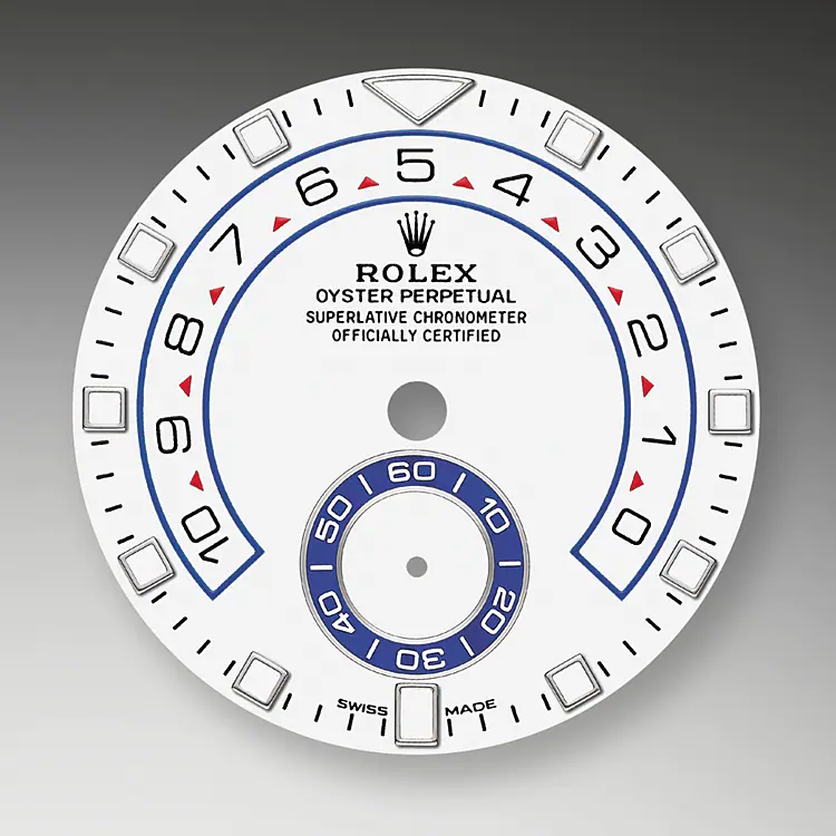 The Yacht-Master II is equipped with a new dial, and new hands that are characteristic of Rolex Professional models, enhancing legibility and sharpening its aesthetic appeal. The dial now features a triangular hour marker at 12 o’clock and a rectangular hour marker at 6 o’clock for more intuitive reading of the watch. A luminescent disc on the hour hand clearly distinguishes it from the minute hand. The Yacht-Master II’s countdown can be programmed for a duration of between 1 and 10 minutes. The programming is memorized by the mechanism so that at a reset it returns to the previous setting. Once launched, the countdown can be synchronized on the fly to match the official race countdown.